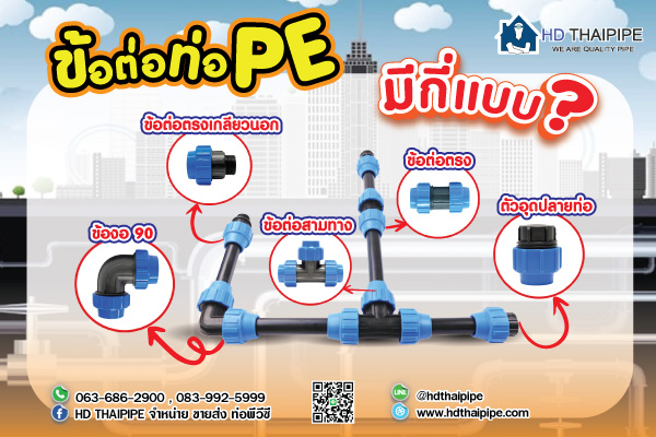 หากให้ระบุอย่างชัดเจนว่า ข้อต่อ PE มีทั้งหมดกี่แบบ คงเป็นเรื่องยากพอสมควร เนื่องจากรูปแบบของท่อนั้นค่อนข้างหลากหลาย สามารถใช้งานได้ในทุกสถานการณ์ มีการออกแบบเป็นพิเศษในหลาย ๆ จุด ไม่ว่าจะมี ข้อต่อโค้ง ข้อต่อเชื่อม ข้อต่อทางแยก ไปจนถึงข้อต่อฝาครอบ และอื่น ๆ อีกมากมายให้คุณได้เลือกใช้ ไม่ว่างานท่อของคุณจะคดเคี้ยวเพียงใด ก็มีข้อต่อที่เหมาะกับตำแหน่งนั้น ๆ เอาไว้รองรับอย่างแน่นอน