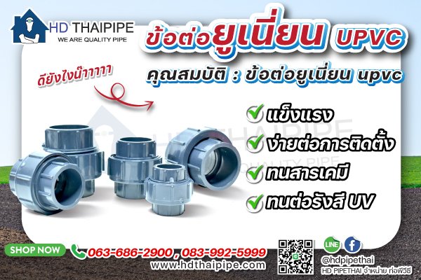 ทุกท่านทราบดีว่า uPVC เป็นวัสดุที่ใช้ในการผลิตข้อต่อยูเนี่ยน แต่เพื่อการใช้งานอย่างมีความเป็นมืออาชีพที่สุดเราจะพาทุกท่านไปรู้จักกับเจ้า uPVC ให้ลึกกว่าเดิมกันค่ะ จะได้ใช้งานอย่างถูกต้องถูกวิธี เอาล่ะ uPVC มีชื่อเต็มว่า Unplasticized Polyvinyl chloride ซึ่งเป็นพีวีซีที่ไม่มีการเติมสารเพิ่มความนิ่ม (plasticizer) หรือเรียกว่าเป็น Rigid PVC นั่นเอง แต่จะเป็นการใส่สารเสริมสภาพ (stabilizer) และสารเติมแต่งอื่นๆลงไปแทน เพื่อช่วยให้วัสดุยูพีวีซีมีคุณสมบัติที่ดีเยี่ยมแตกต่างจากวัสดุประเภทอื่น สารเสริมสภาพ stabilizer ช่วยเสริมสร้างความทนทานต่อแสงแดด, ความชื้น, และสภาพอากาศภายนอกอื่นๆอันอาจส่งผลต่อตัวท่อ ยูพีวีซีจึงมีความทนทานกว่าพีวีซีหรือพลาสติกประเภทอื่น การสังเกตยูพีวีซีที่มีคุณภาพดีสามารรถสังเกตได้จากพื้นผิวภายนอกจะมีความมันเงา หรือเรียกอีกอย่างว่า Virgin-uPVC หากเกรดต่ำจะมีพื้นผิวที่บาง เปราะหักง่าย ทดลองได้โดยการลองกดหรือบีบเบาๆ แต่ทั้งนี้การสังเกตด้วยวิธีที่ได้กล่าวไปนี้อาจไม่แม่นยำ 100% การดูวัสดุที่ใช้ในการผลิตบนตัวผลิตภัณฑ์จะช่วยให้ท่านได้คำตอบที่ถูกต้องมากกว่า